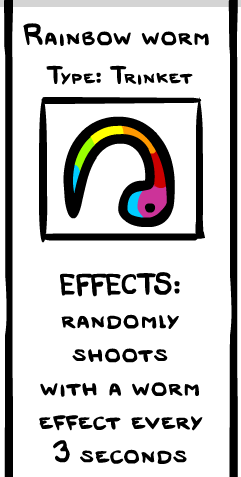 Rainbow Worm is a trinket added in The Binding of Isaac: Afterbirth.